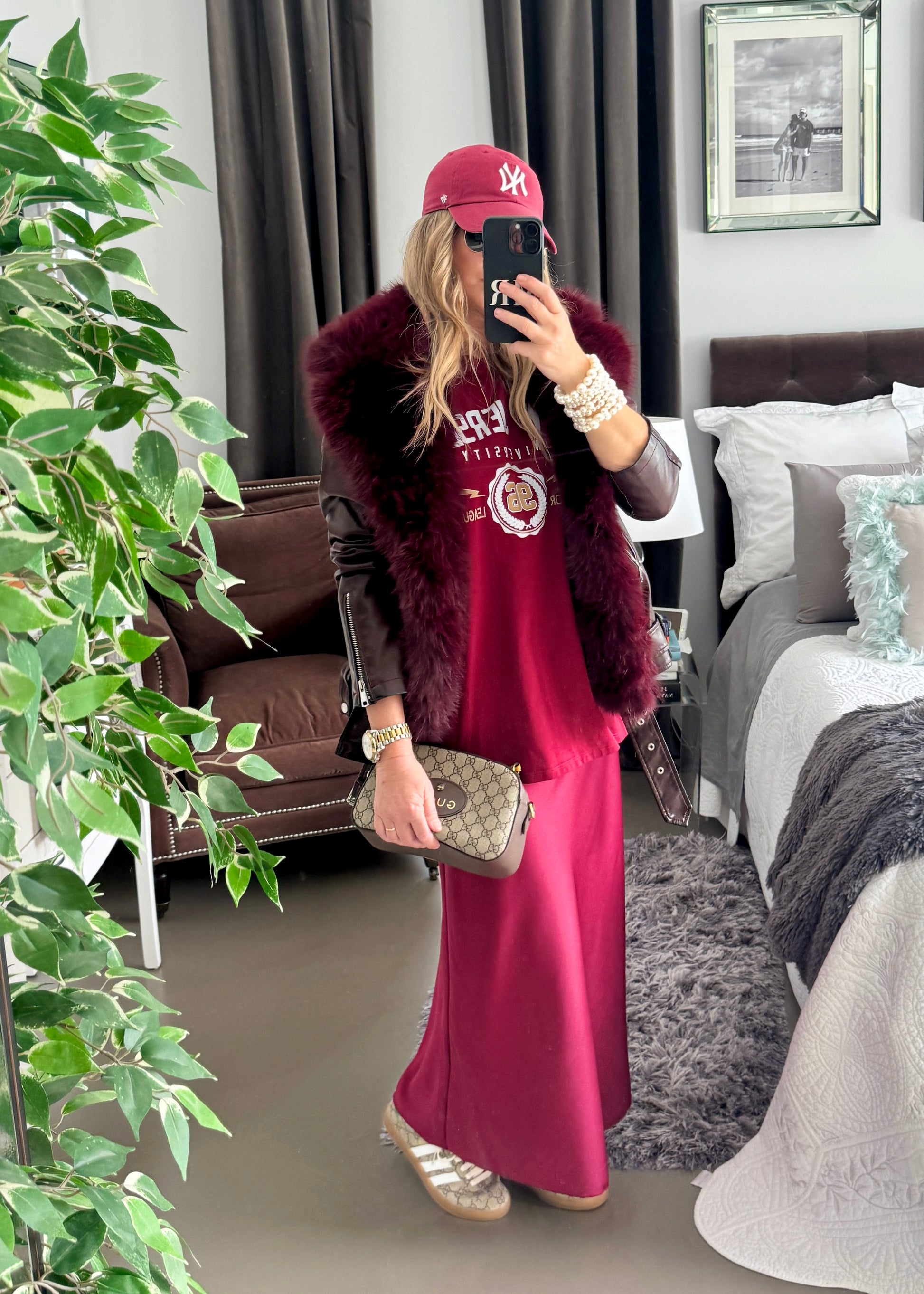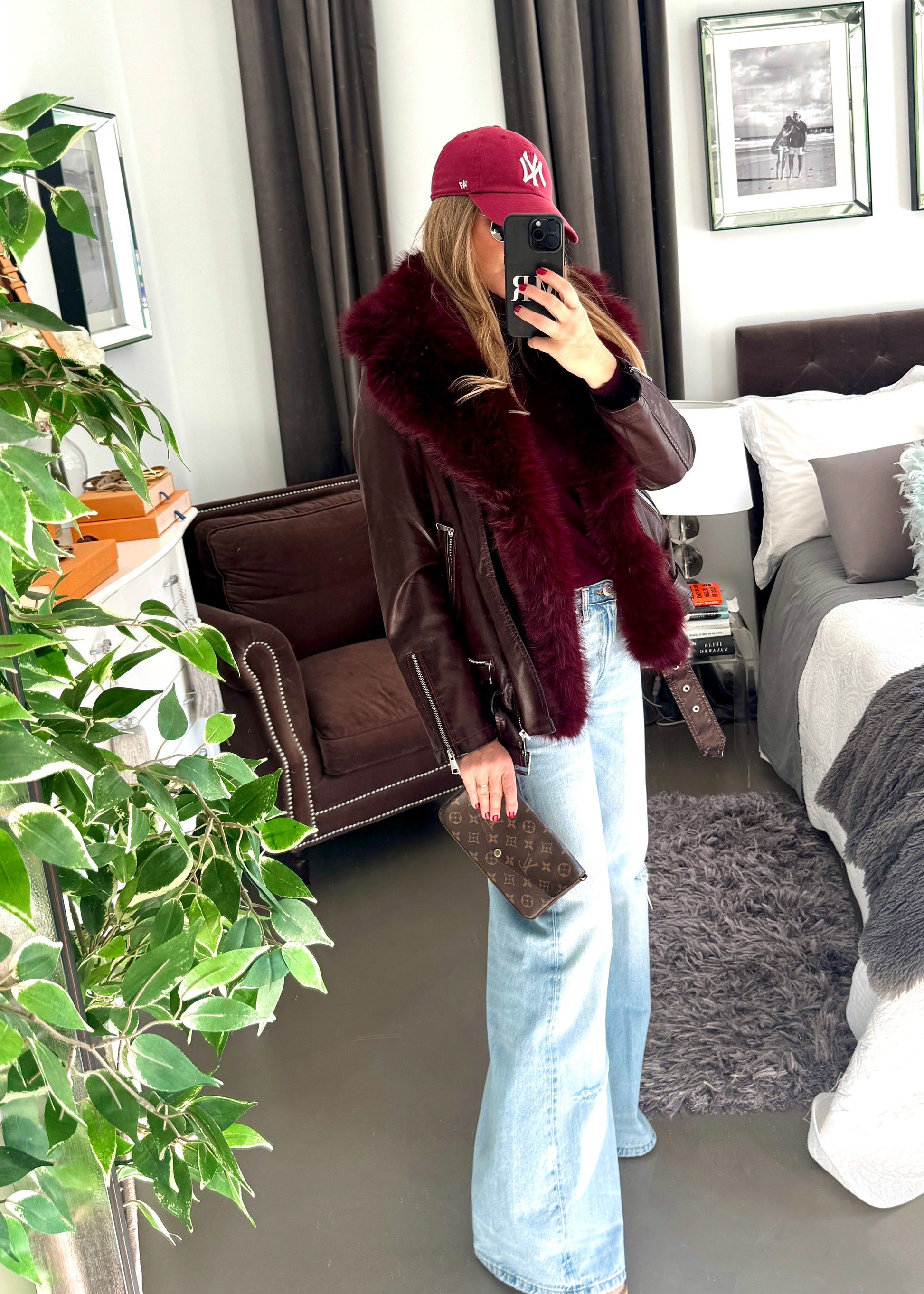 CAZADORA BIKER EFECTO PIEL BURDEOS