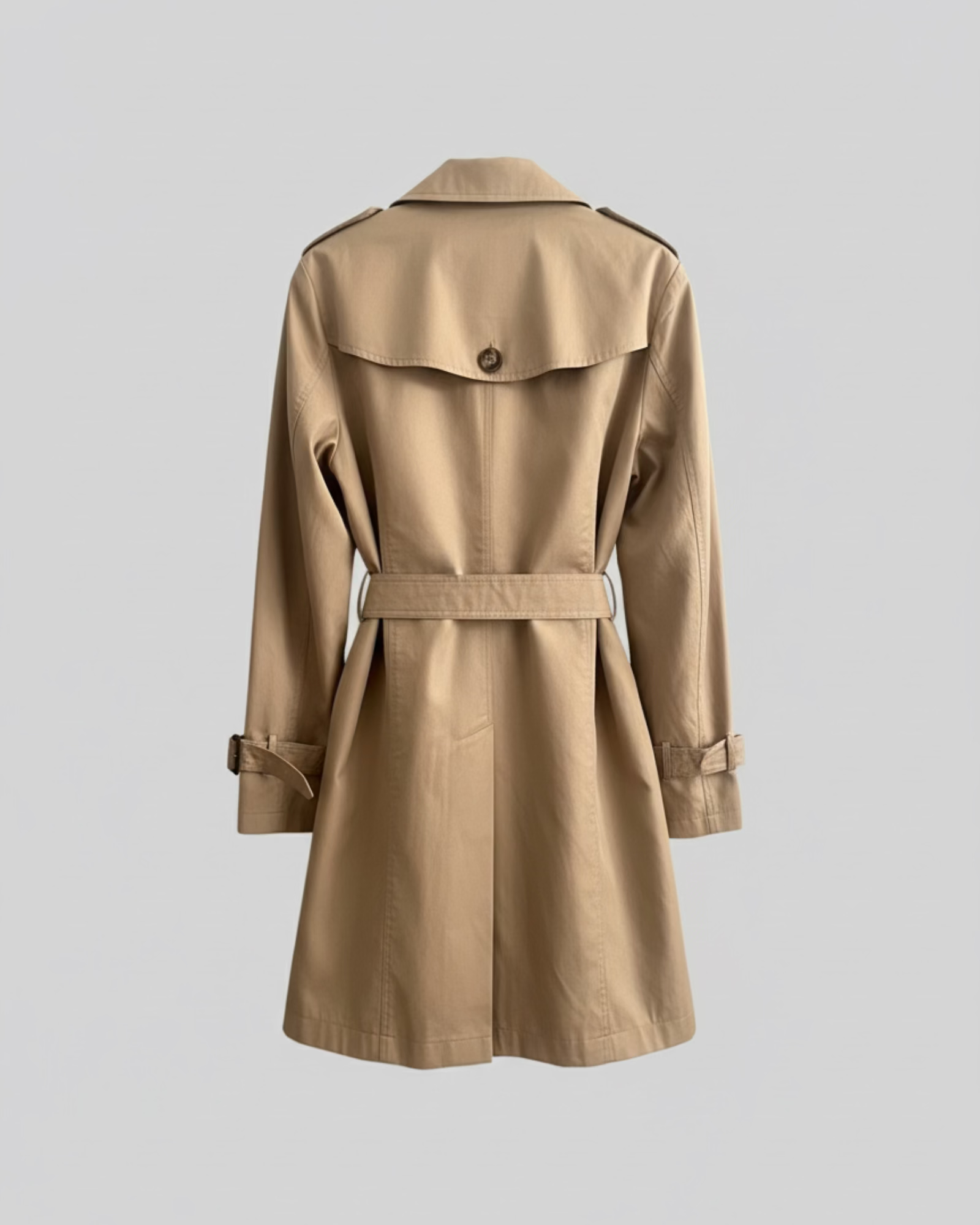 Trench con cuello solapa y manga larga acabada en trabillas ajustable con hebilla. Bolsillos delanteros. Cinturón ajustable con hebilla. Detalle de trabillas en hombros. Cierre frontal cruzado con botones. Forro interior.