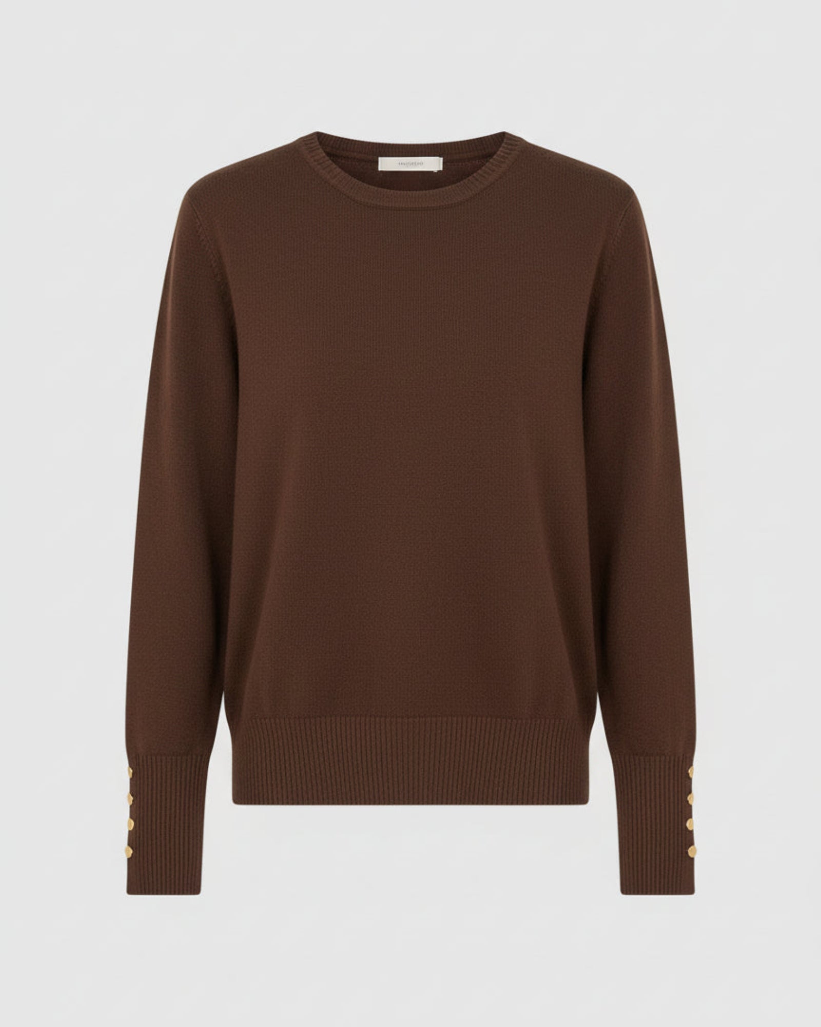 Jersey de cuello redondo y manga larga. Acabados en rib. Detalle de botones dorados en puño.