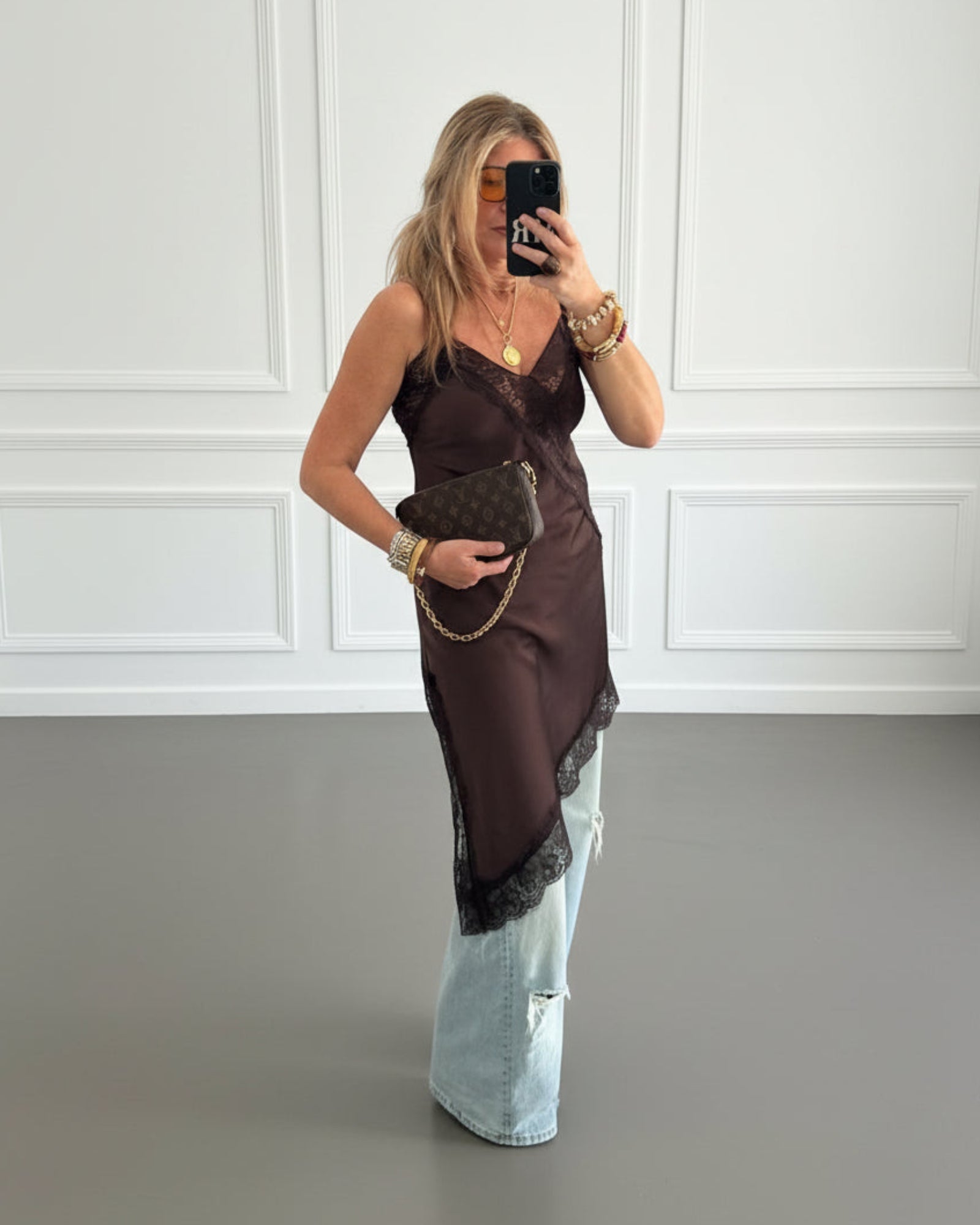VESTIDO LENCERO ASIMETRICO MARRÓN