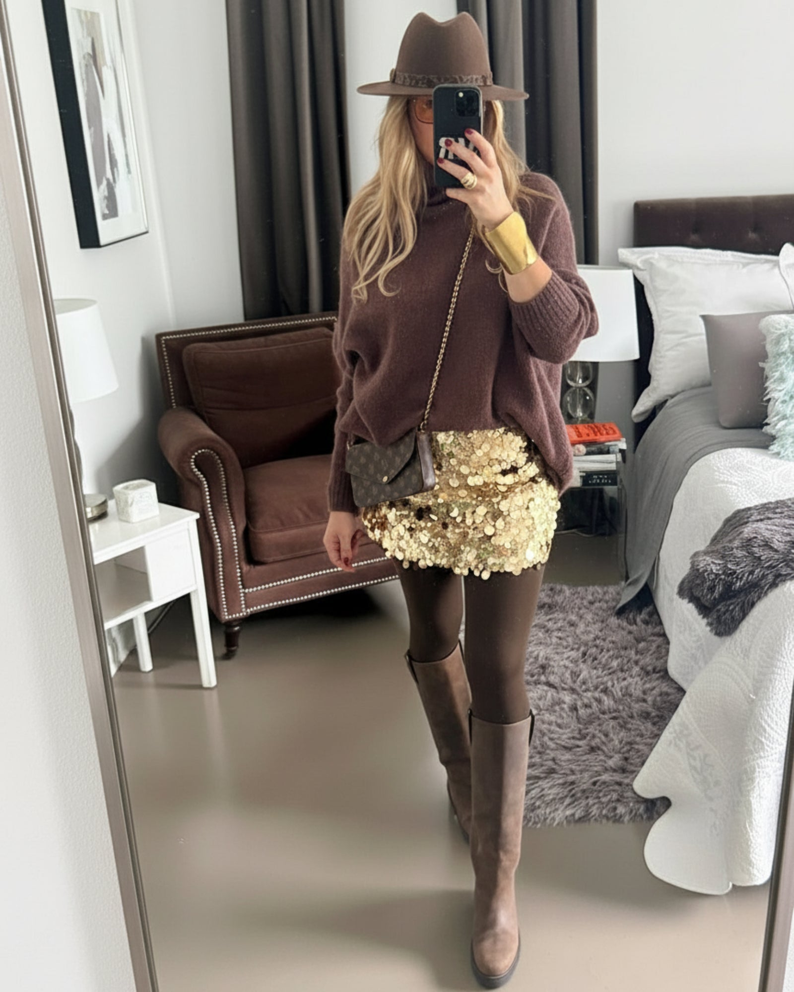 Falda con lentejuelas. Forro interior. Cierre lateral con cremallera oculta en costura. Cintura elástica.