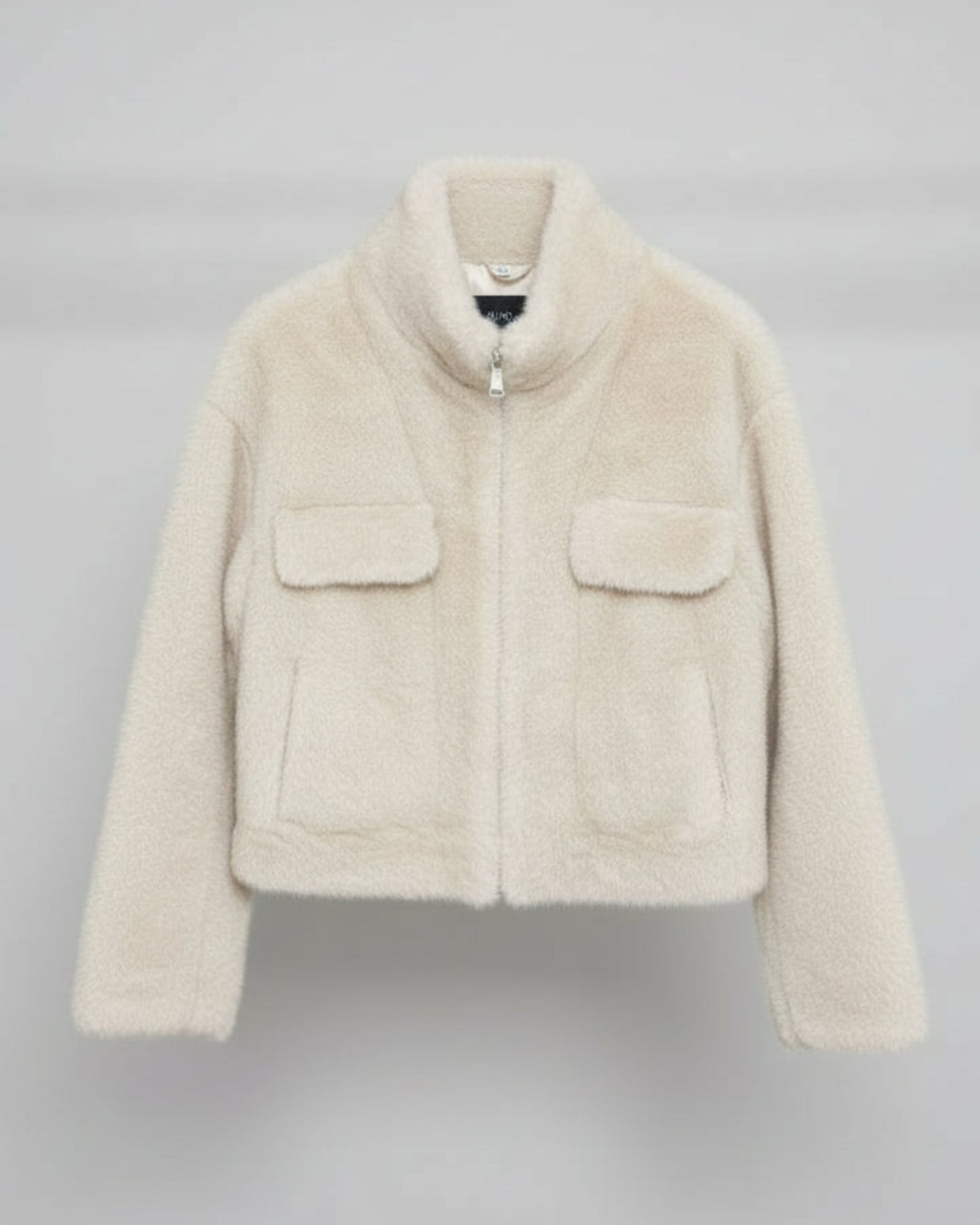 Cazadora de manga larga. Bolsillos delanteros. Cierre frontal con cremallera.